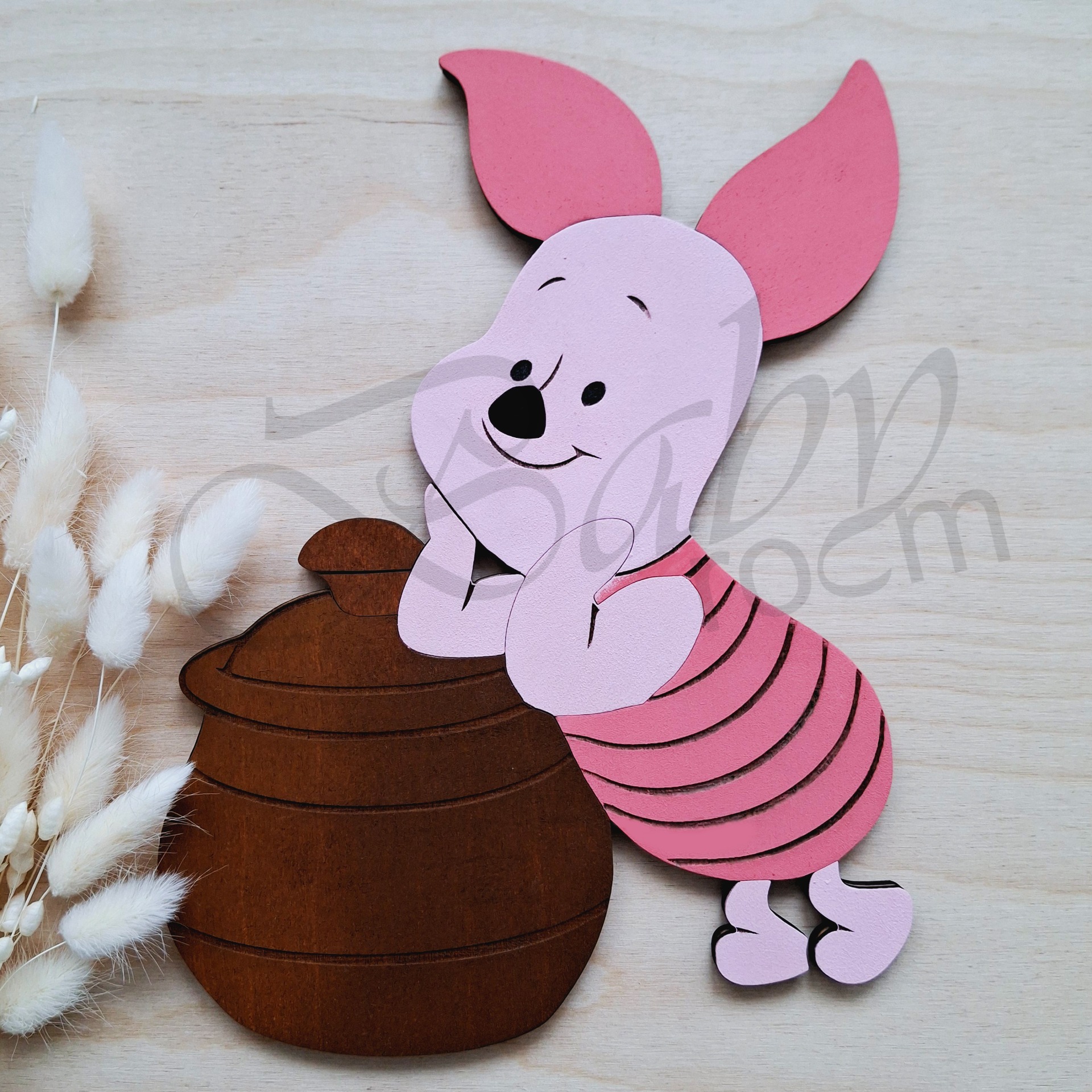 Ez az aranyos, lézerrel készült fa falidísz egy játékos kis figurát ábrázol, amely tökéletesen kiegészíti a gyerekszoba hangulatát.